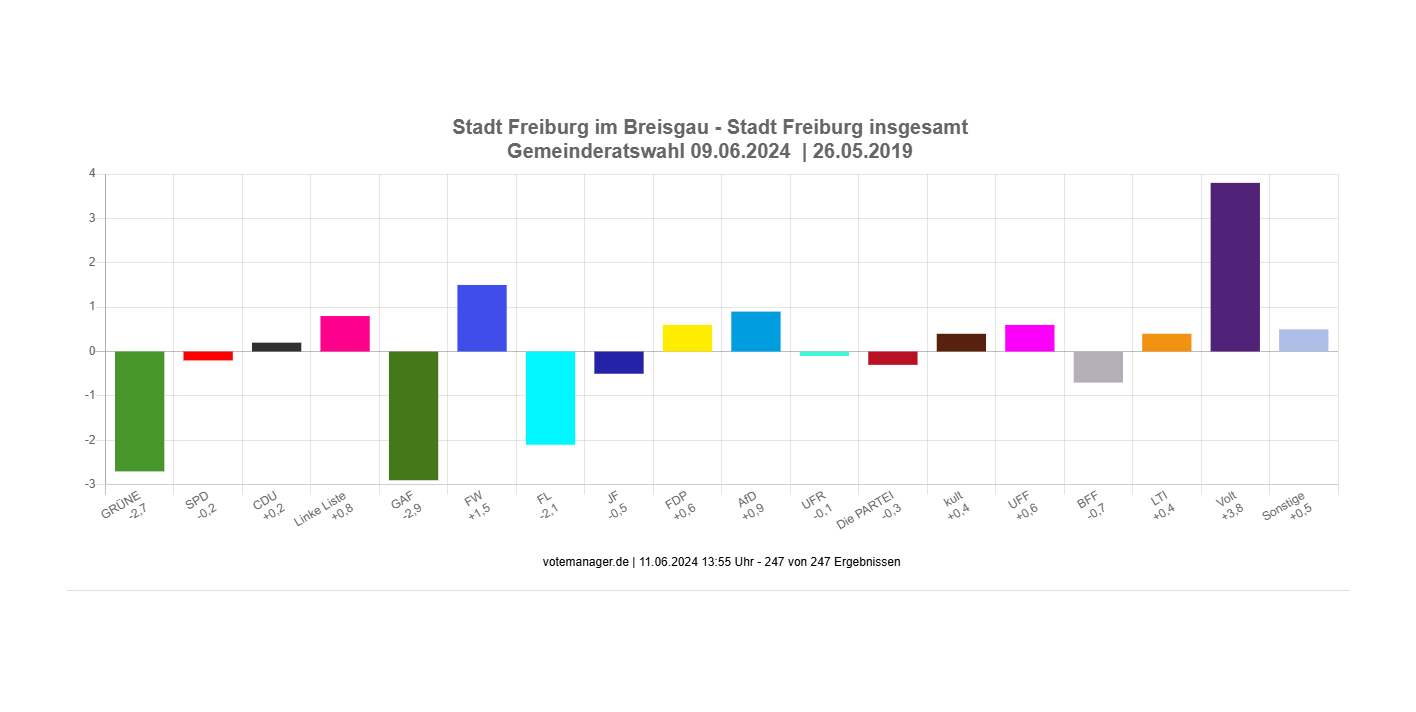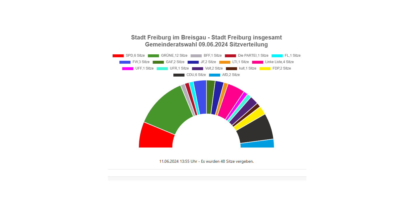 Ergebnisse der Gemeinderatswahl in Freiburg - Sitzverteilung, Veränderung gegenüber 2019, Wahlbeteiligung etc.