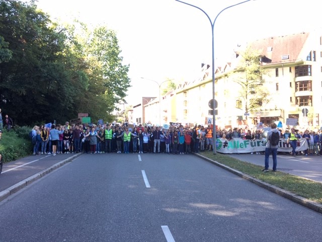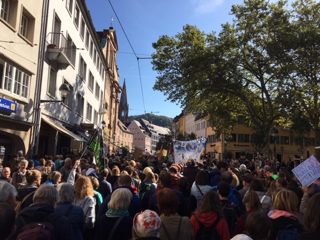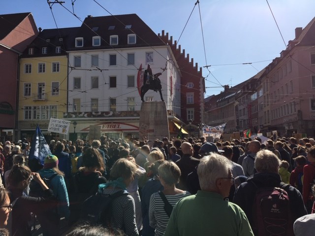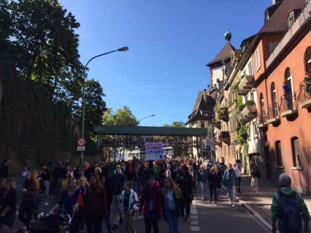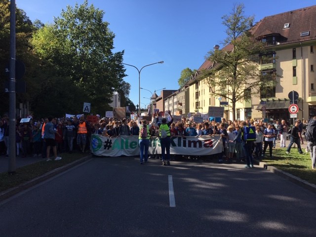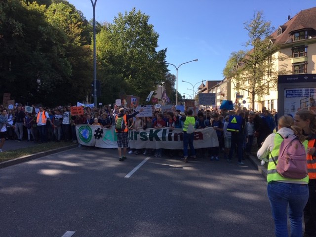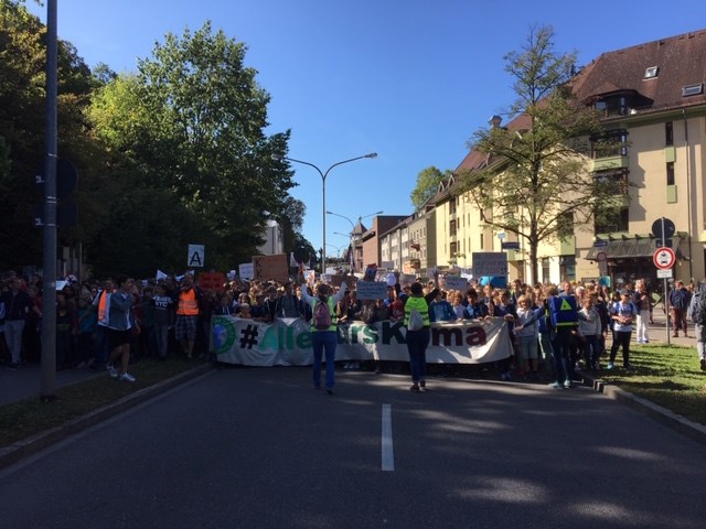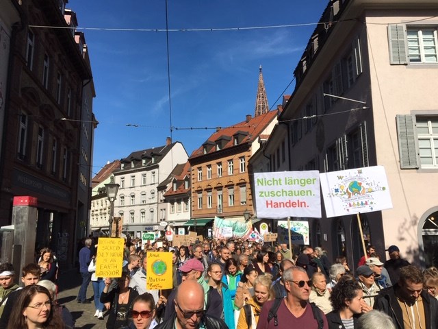 An der Seite von FFF mobilisierte u.a. auch das Klimaaktionsbündnis Freiburg. In ihm haben sich über 550 Umweltschutzverbände, Parteien, Unternehmen, Organisationen etc. zusammengeschlossen.